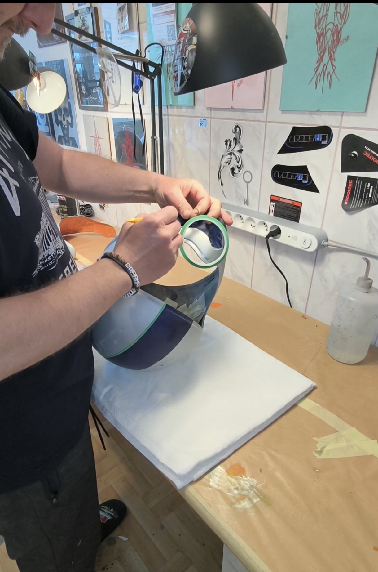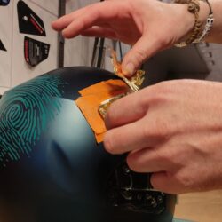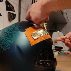 Praca nad jednym kaskiem trwa zazwyczaj około dwóch tygodni. To czas potrzebny na demontaż, przygotowanie powierzchni, żmudne oklejanie wektorowych szablonów, malowanie grafik, lakierowanie finalne i polerowanie.