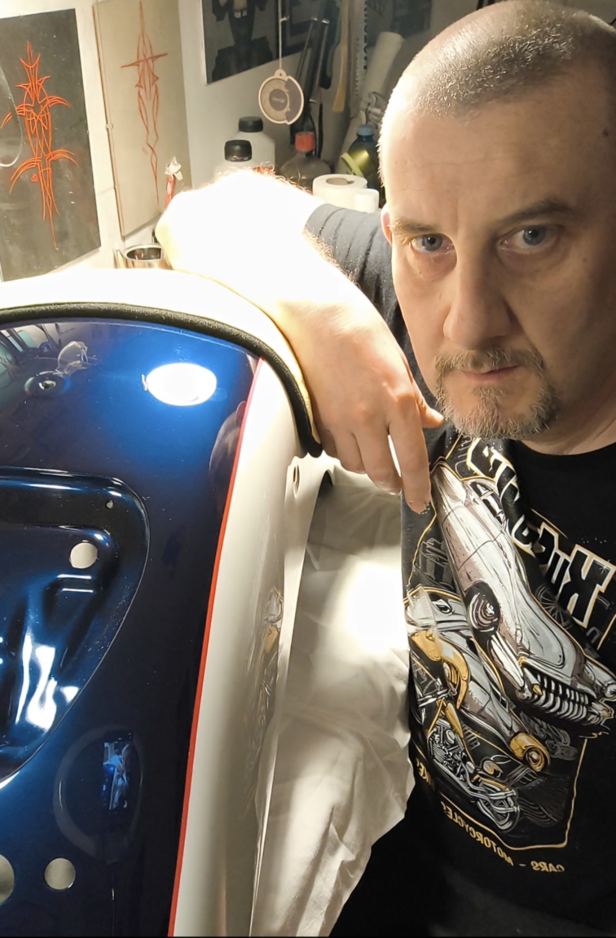 Grzegorz Baliński w branży lakierniczej działa od 15 lat, ale to ostatnia dekada była poświęcona temu, co kocha najbardziej – lakiernictwu customowemu. W jego warsztacie w Rokitnie Szlacheckim na Śląsku powstają niezwykłe projekty: od kasków i motocykli, po autorskie lampy ze zbiorników paliwa i personalizowane blachy garażowe.