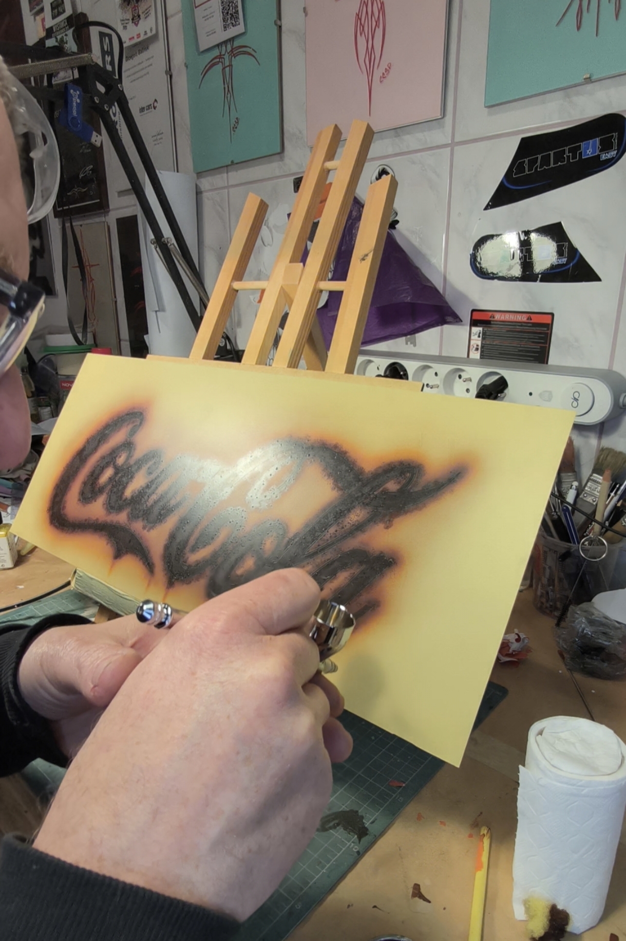 Proces zaczyna się od demontażu i przygotowania powierzchni, następnie wykonywane są szablony i grafika aerografem lub pędzlem. Na końcu nakłada się lakier bezbarwny i poleruje powierzchnię.
