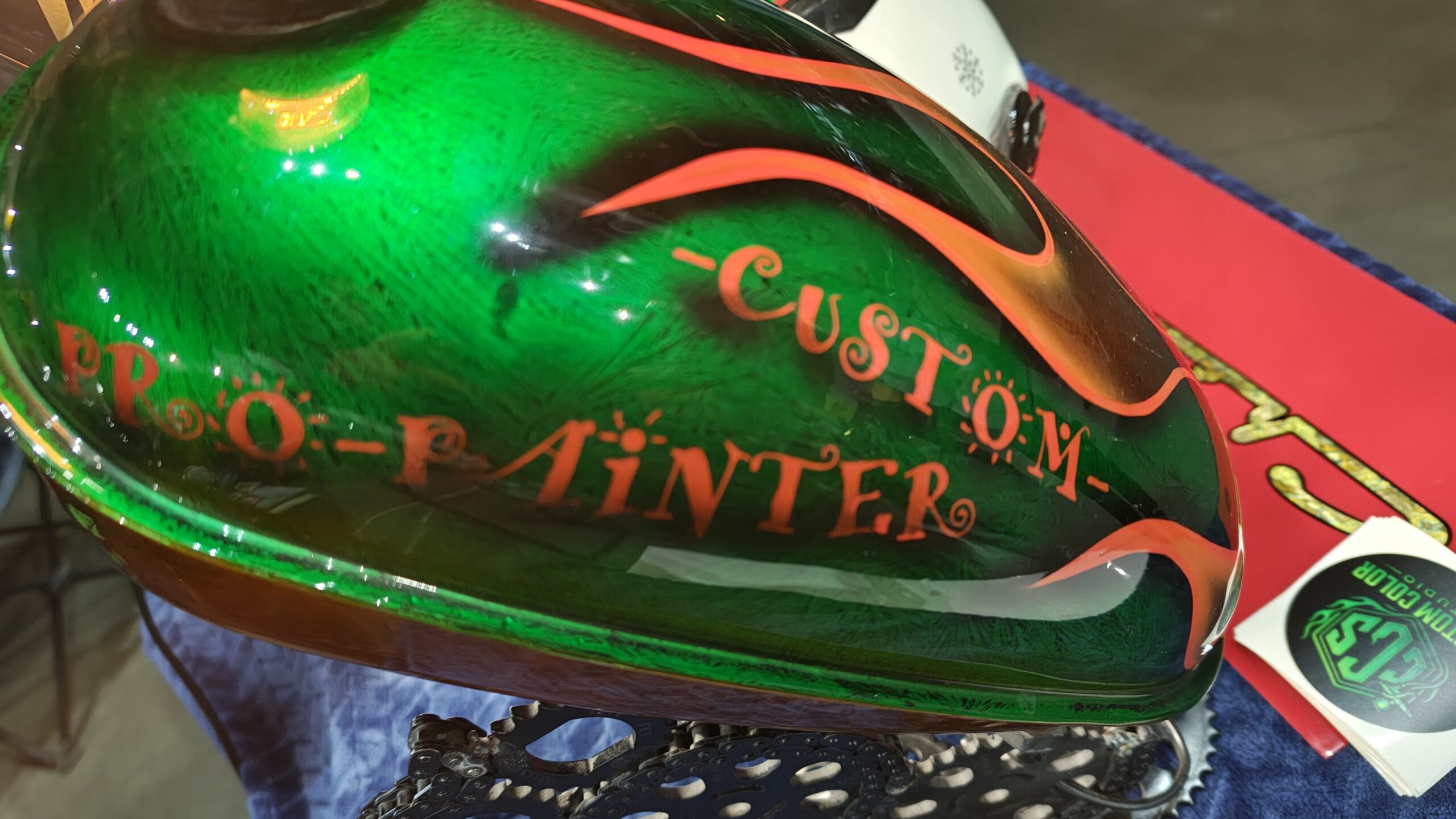 Technika jaką stosuje pan Grzegorz w Custom Color Studio to często skomplikowany miks. Mowa tu o aerografii do miękkich przejść i cieniowań. Klasycznym malowaniu pędzlem przy detalach takich jak płatki kwiatów, a także niestandardowym maskowaniu, gdzie używa nawet włóknin ściernych do uzyskania specyficznych faktur.
