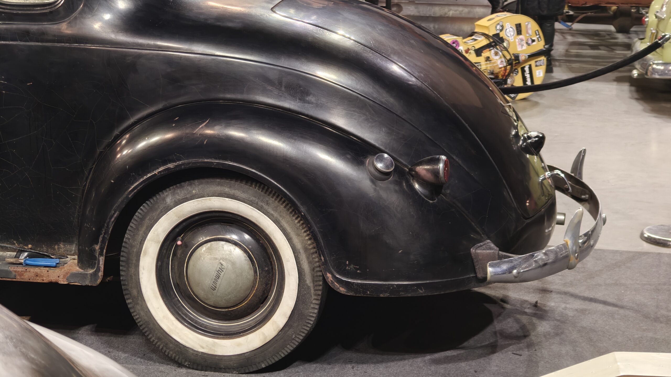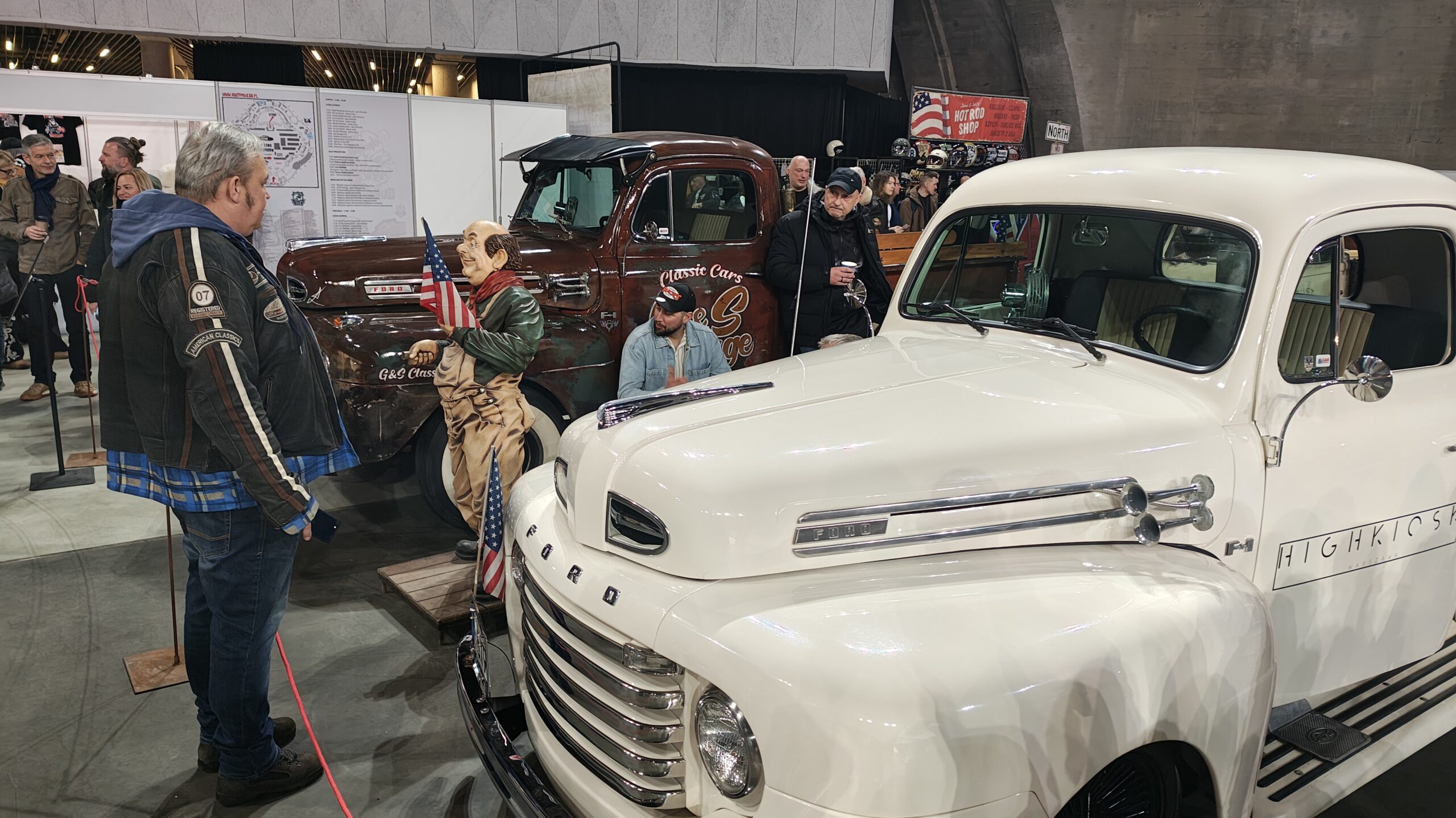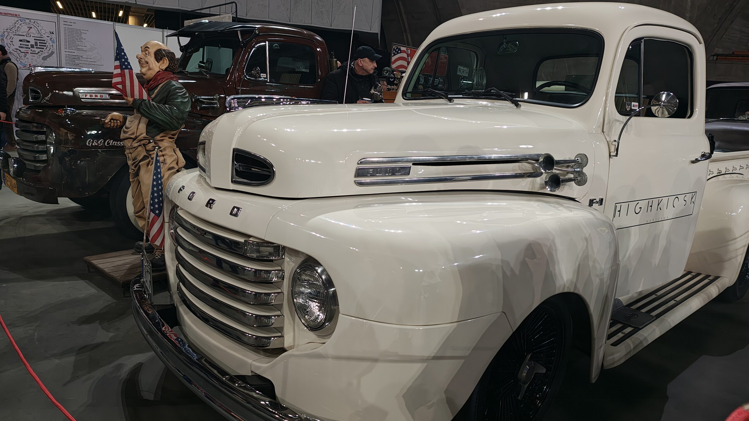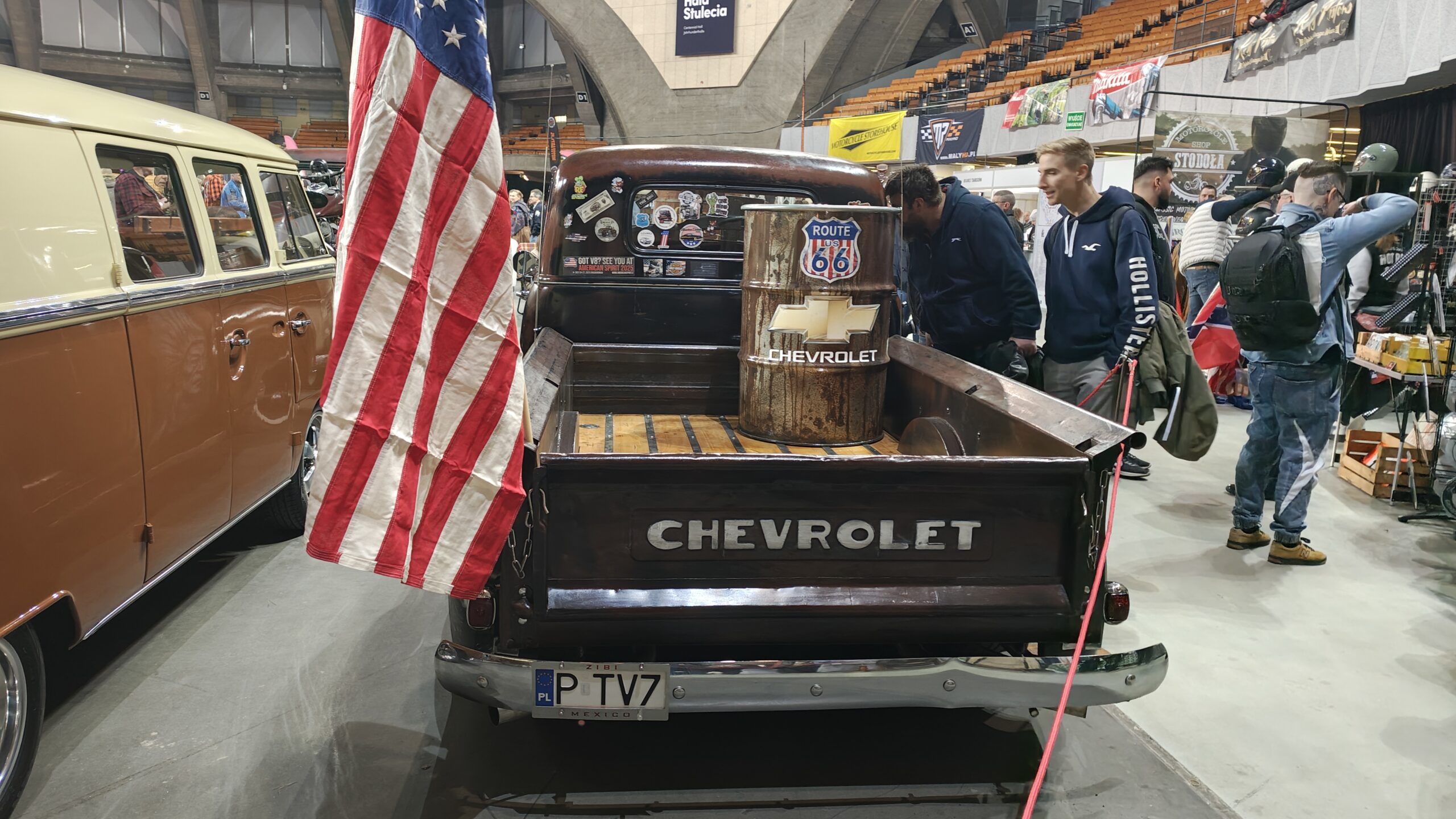 Przeglądając wystawione auta, można było zwrócić uwagę na kilka skrajnie różnych podejść do wykończenia nadwozia. Uwagę przykuwał Ford F-1 – podręcznikowy przykład pickup’a z patyną, białymi bokami opon i ręcznie wykonanymi napisami. Warto podkreślić, że to, co laik nazwie „starym lakierem”, w świecie kustomu jest często precyzyjnie zabezpieczonym efektem w matowym wykończeniu, mającym chronić autentyczny nalot czasu na lata.