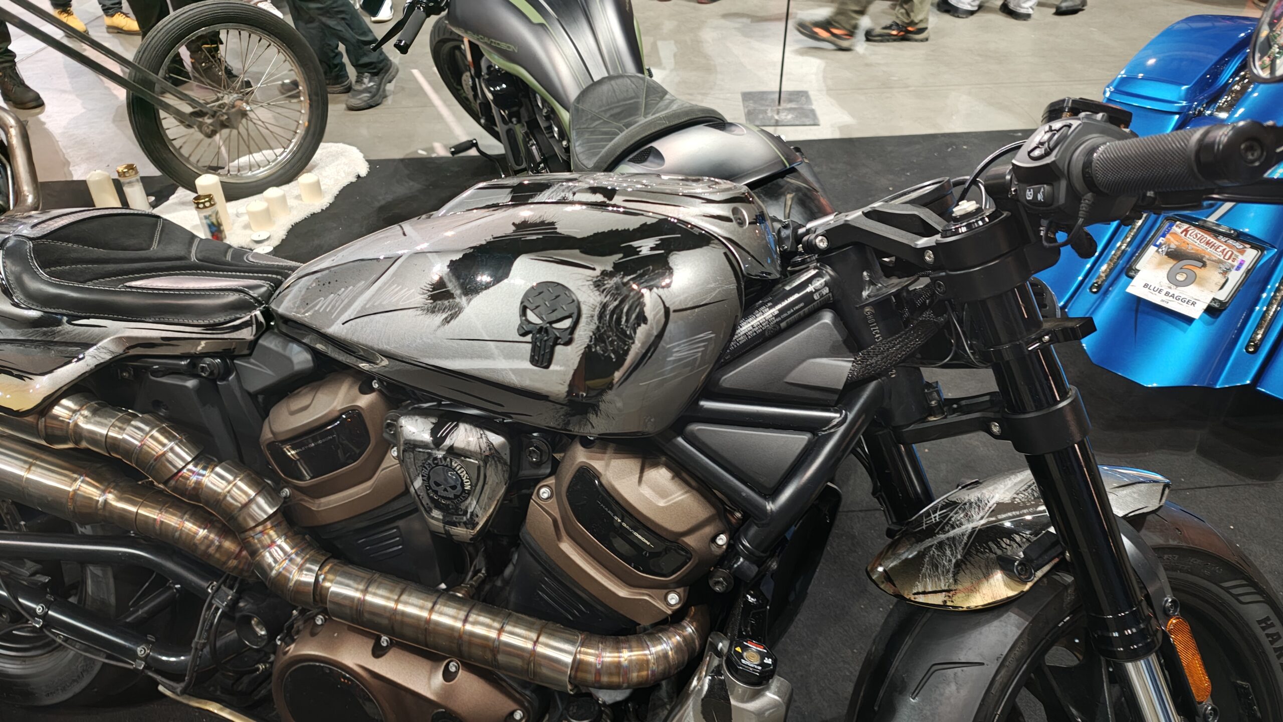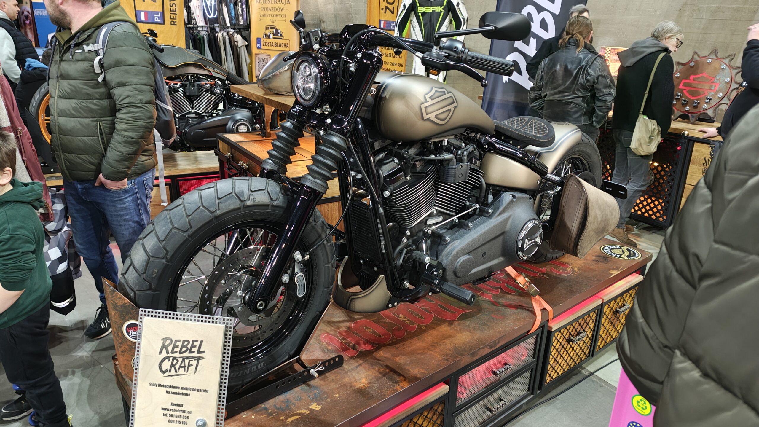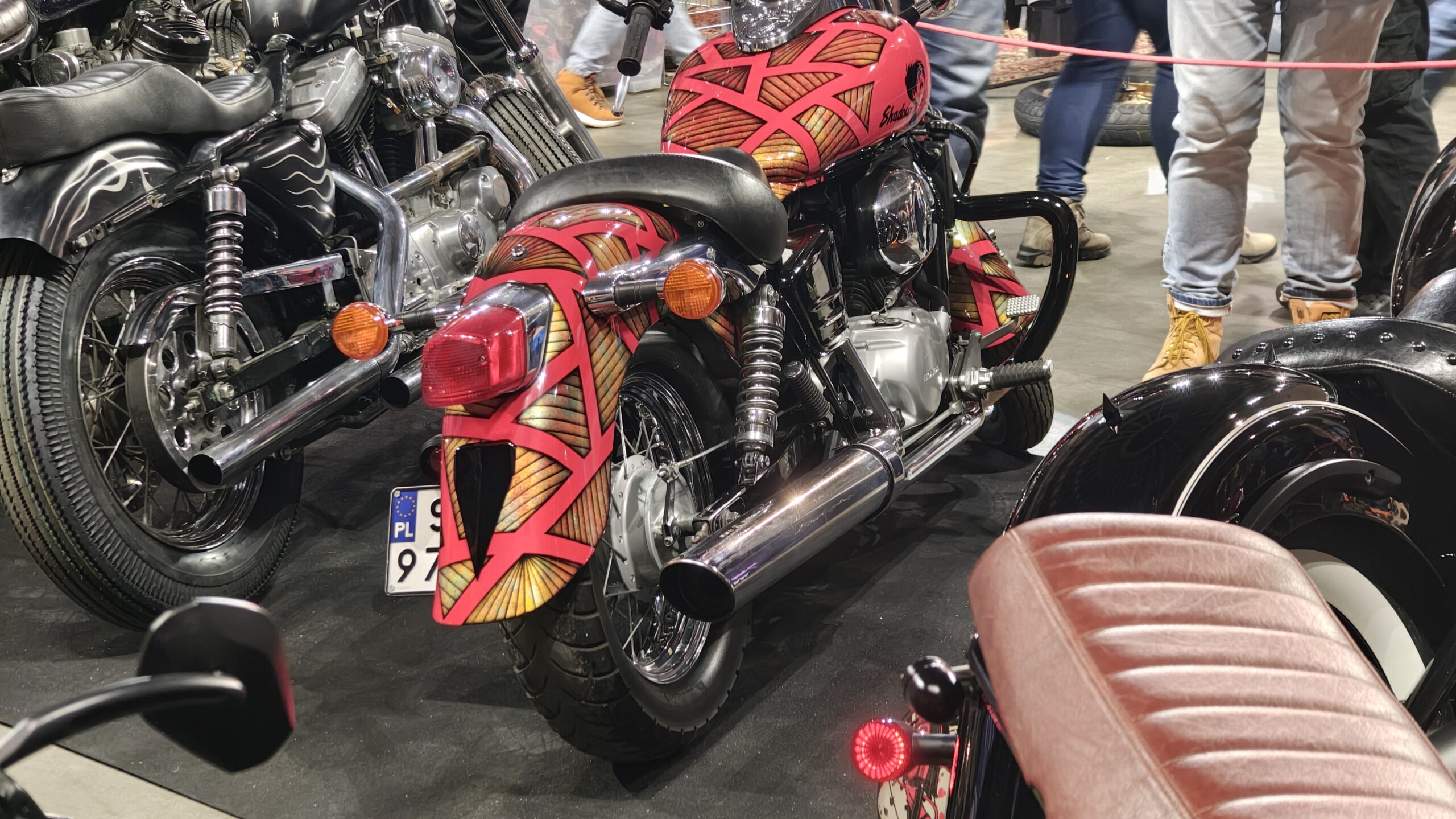 Dla branży lakierniczej sekcja jednośladów była prawdziwą kopalnią inspiracji. Motocykl od Rebel Craft zachwycał satynowym wykończeniem zbiornika w kolorze przygaszonego złota. To był idealny kontrast dla czarnych elementów silnika.