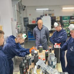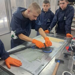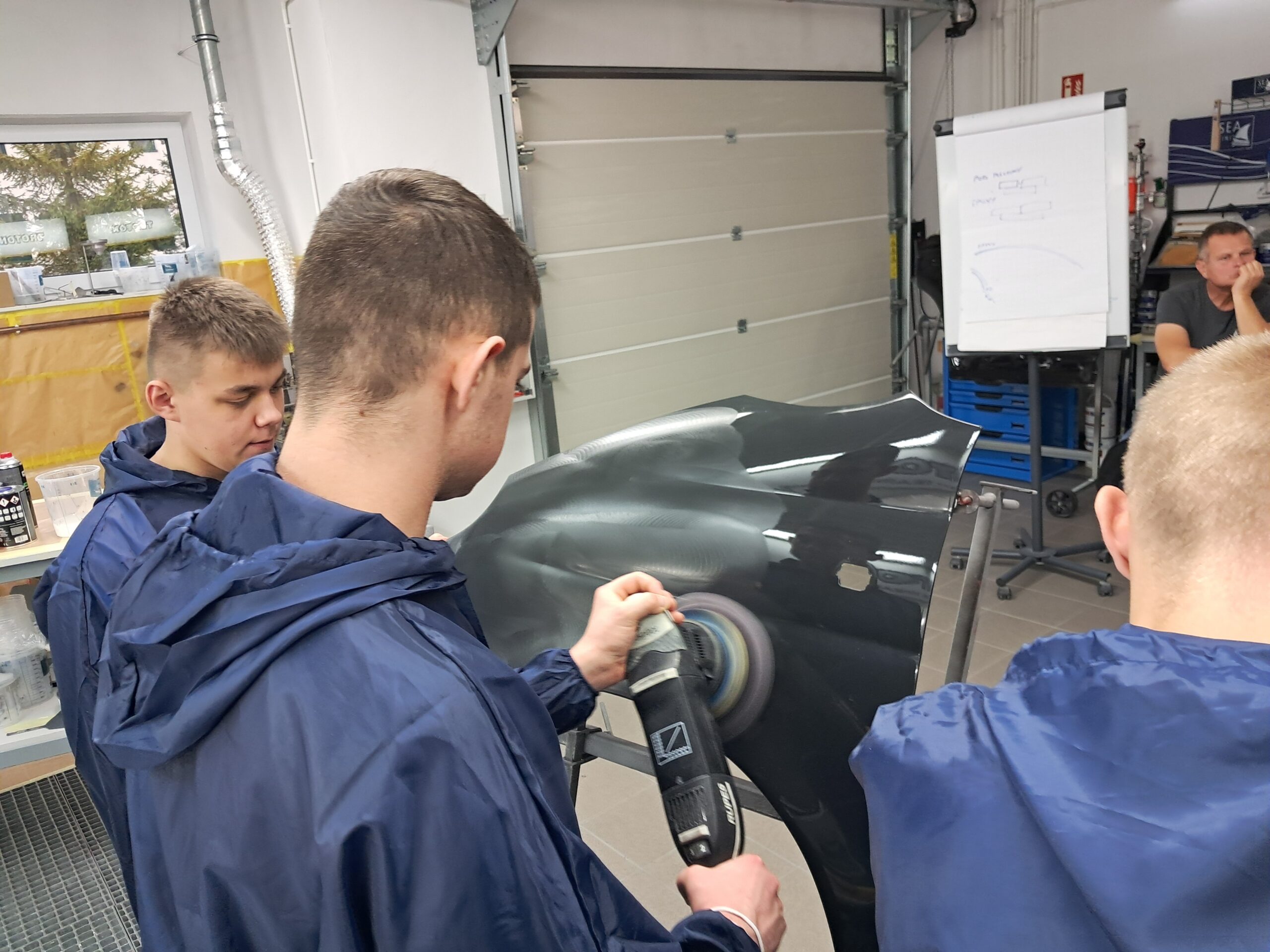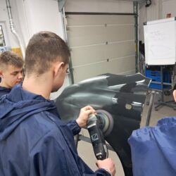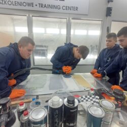 Część warsztatowa obejmowała również prezentację powłoki Rangers – systemu powłok ochronnych o podwyższonej odporności mechanicznej, stosowanego m.in. w renowacjach pojazdów terenowych i roboczych. Nie zabrakło też praktycznych zajęć z zakresu polerowania i usuwania defektów lakieru, podczas których uczniowie poznali różne maszyny polerskie oraz pasty stosowane w codziennej pracy lakiernika.