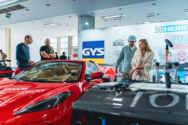 Na specjalnie zaaranżowanej przestrzeni o powierzchni ponad 100 m² odbywały się pokazy napraw na żywo, podczas których prezentowano rzeczywiste procesy prostowania elementów, pomiaru geometrii i odtwarzania oryginalnych kształtów nadwozi. Całość była transmitowana na duże ekrany w jakości 4K, co pozwalało widzom dokładnie śledzić każdy etap pracy.