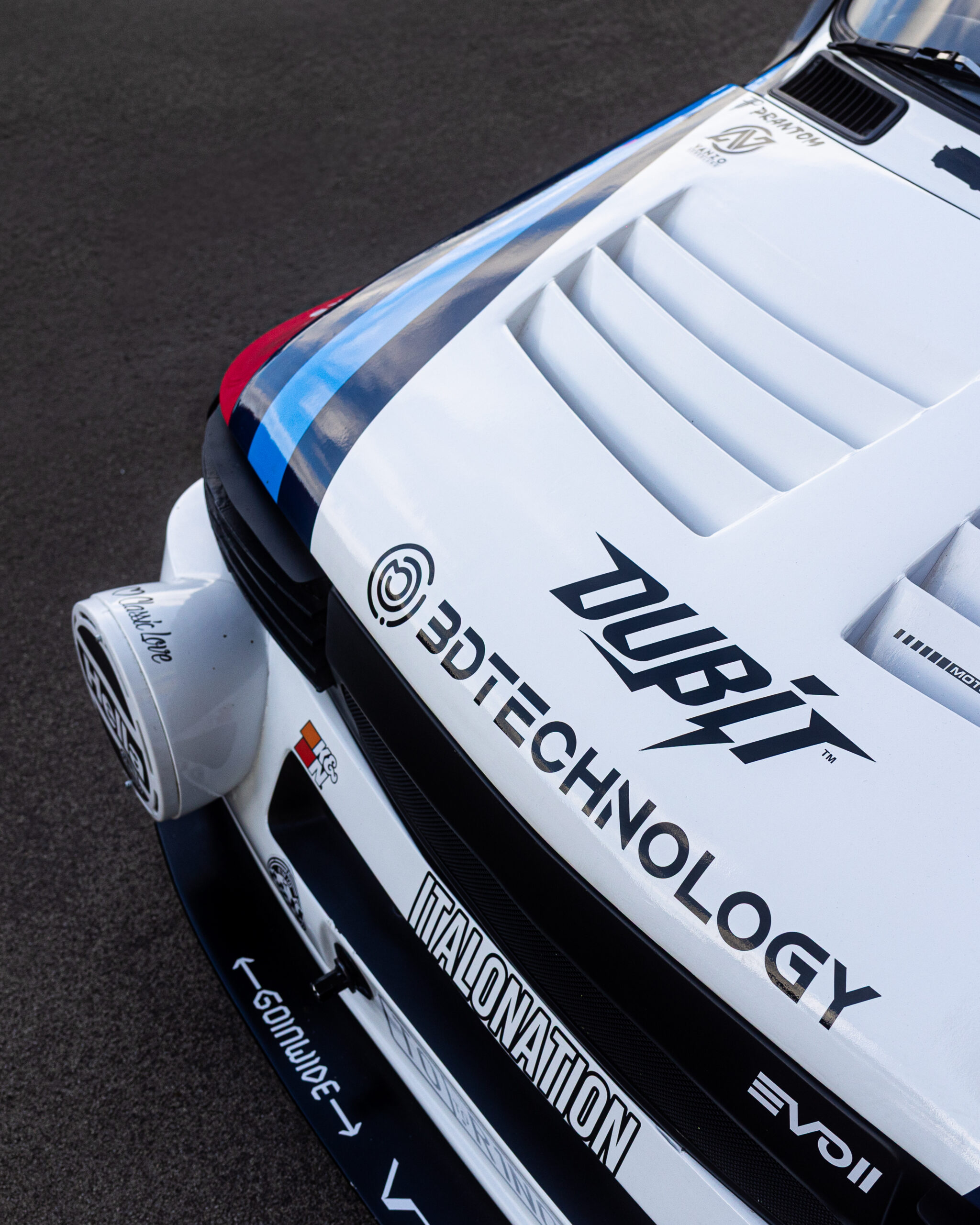 Zmiana koloru nadwozia na biały, zastosowanie folii jako medium lakierniczo-wizualnego, nowe paski rajdowe oraz bodykit drukowany w technologii 3D wyniosły projekt na zupełnie nowy poziom estetyki.