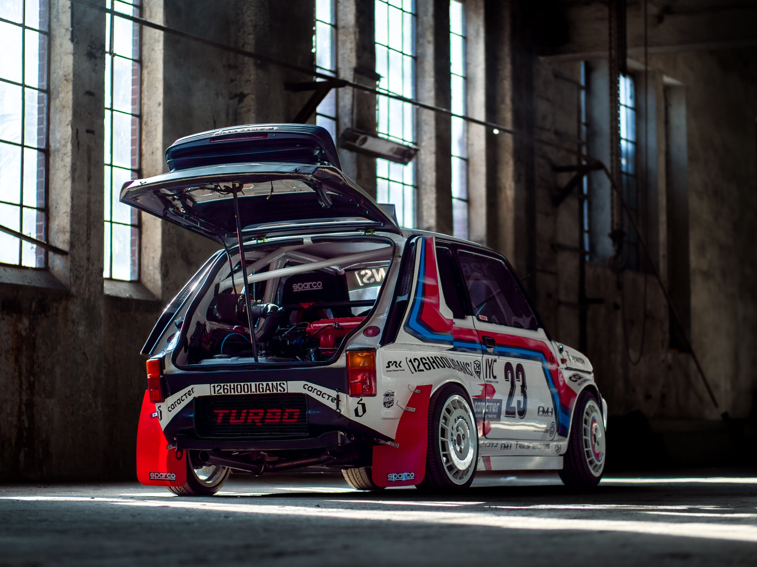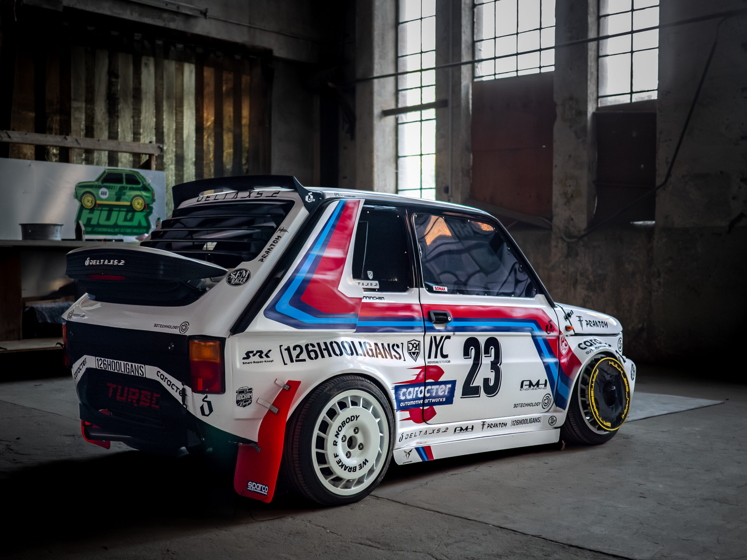 To wtedy narodził się Hulk, zielona bestia, która zaczęła pojawiać się na zlotach w Polsce i Niemczech. Projekt zyskał nową deskę rozdzielczą z Fiata 500 Abarth, sportowe fotele Sparco i –  co kluczowe – pierwszą spójną identyfikację wizualną, zaprojektowaną przez Kacpra Nowka (CARARTR).