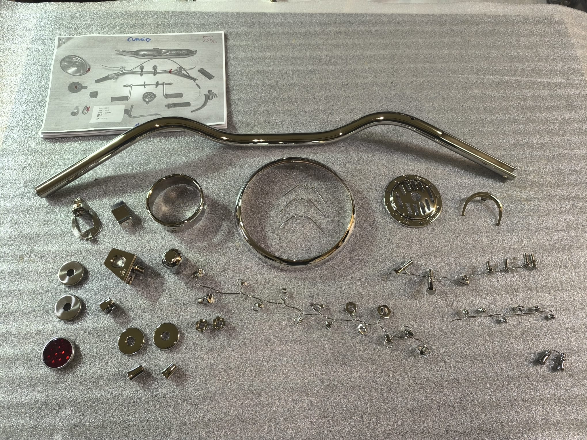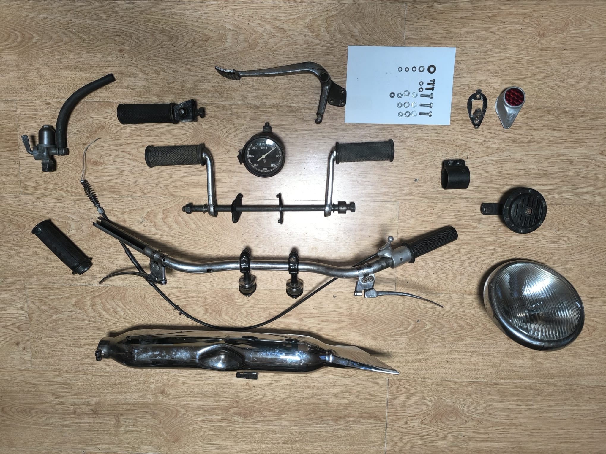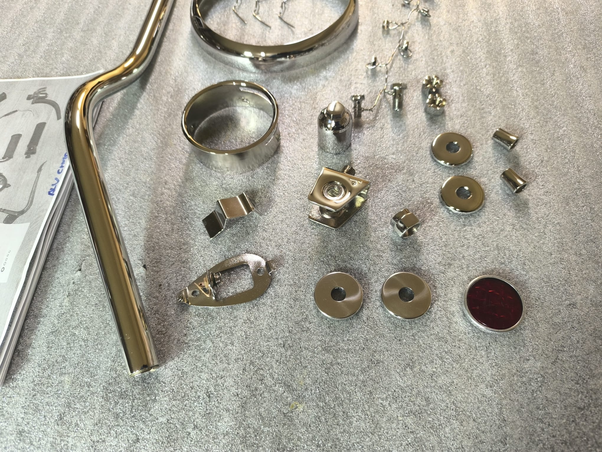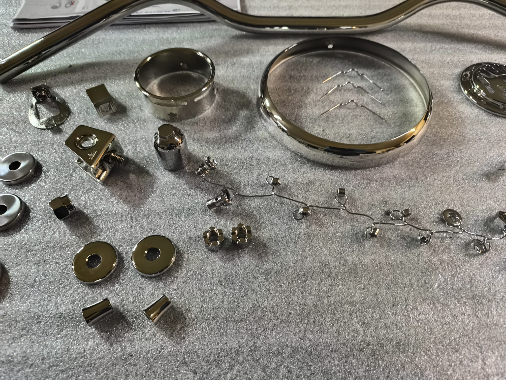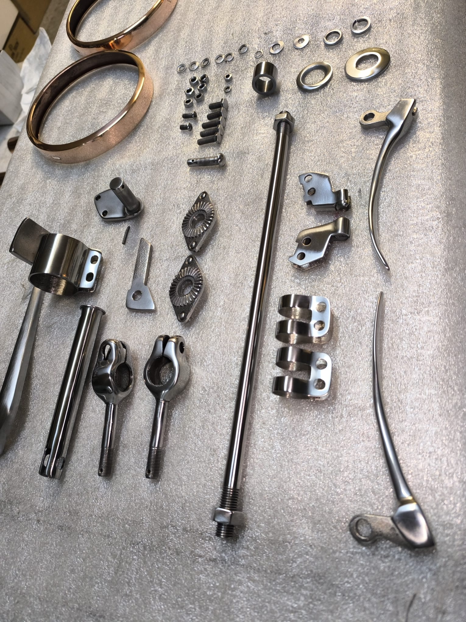 Równolegle trwała renowacja „biżuterii” motocykla. Dźwignie, klamki i obręcze musiały odzyskać fabryczny blask. Zastosowano trzystopniowy proces galwanizacji.