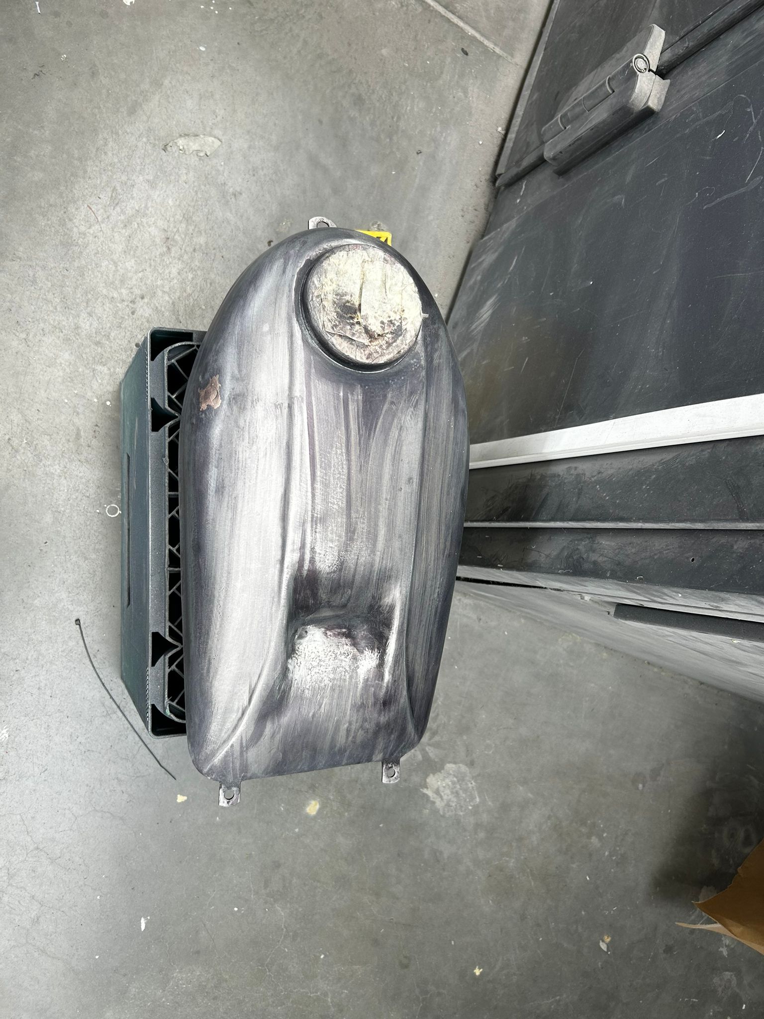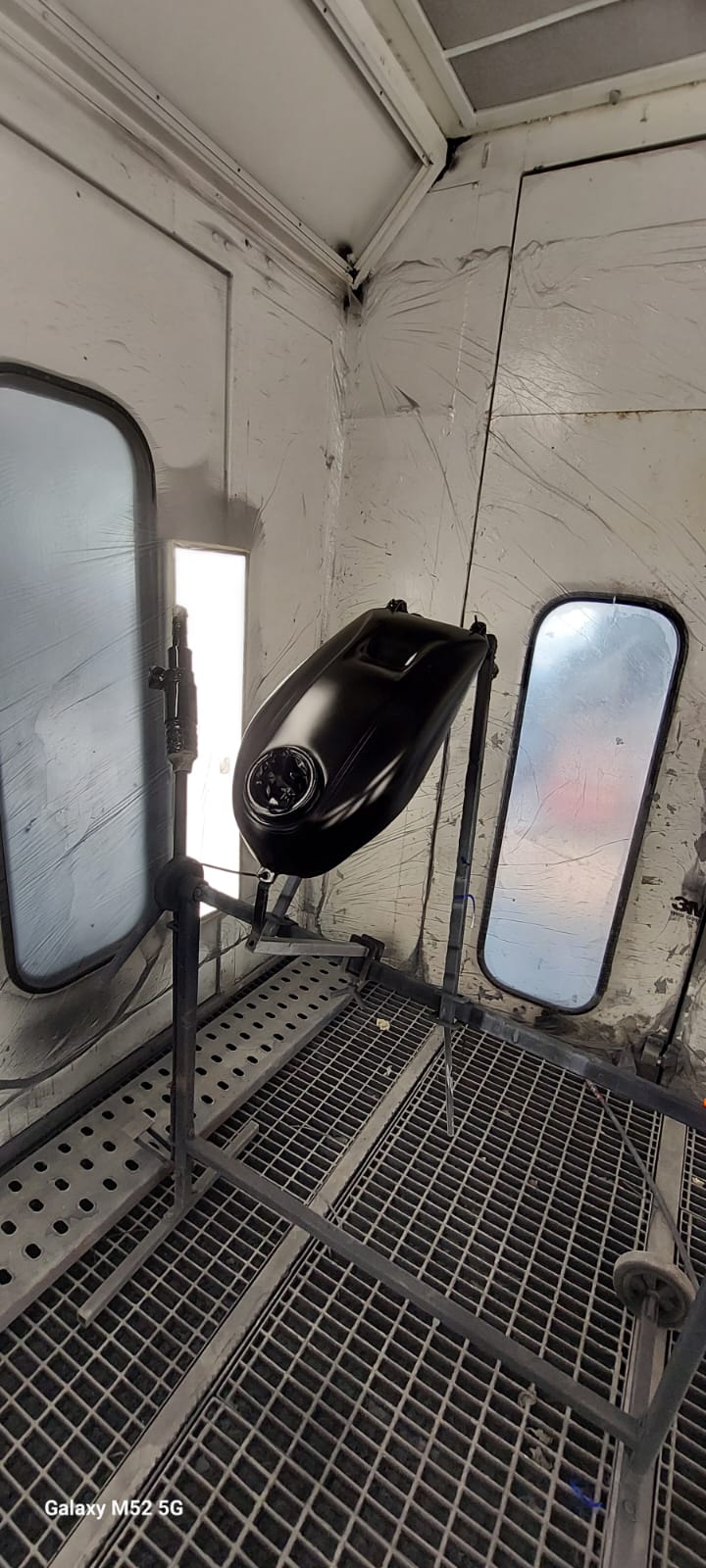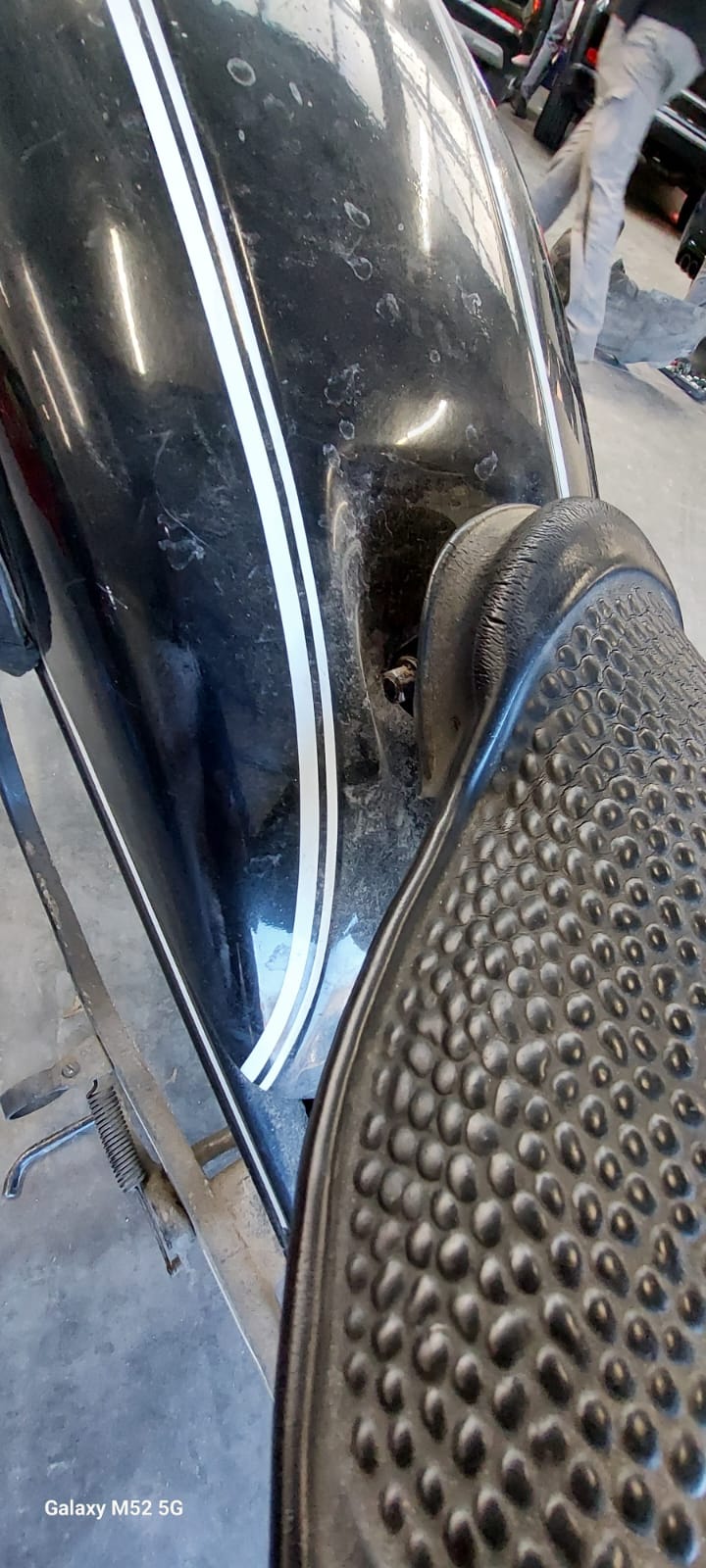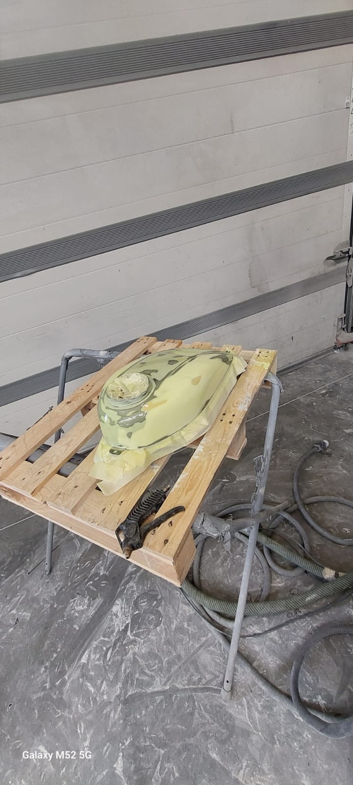 Konieczne było rozcięcie zbiornika. Jak opisuje przedstawiciel CUNEO, wnętrze oczyszczono chemicznie i metodą śrutowania szkłem. Deformacje po uderzeniach naprawiono klasycznie – wypychaniem i cynowaniem, by uniknąć nadmiaru szpachli. Po spawaniu bak został wytrawiony kwasem fosforowym, zabezpieczony epoksydem, a do wnętrza wlano specjalny preparat uszczelniający na bazie żywic fenolowych.