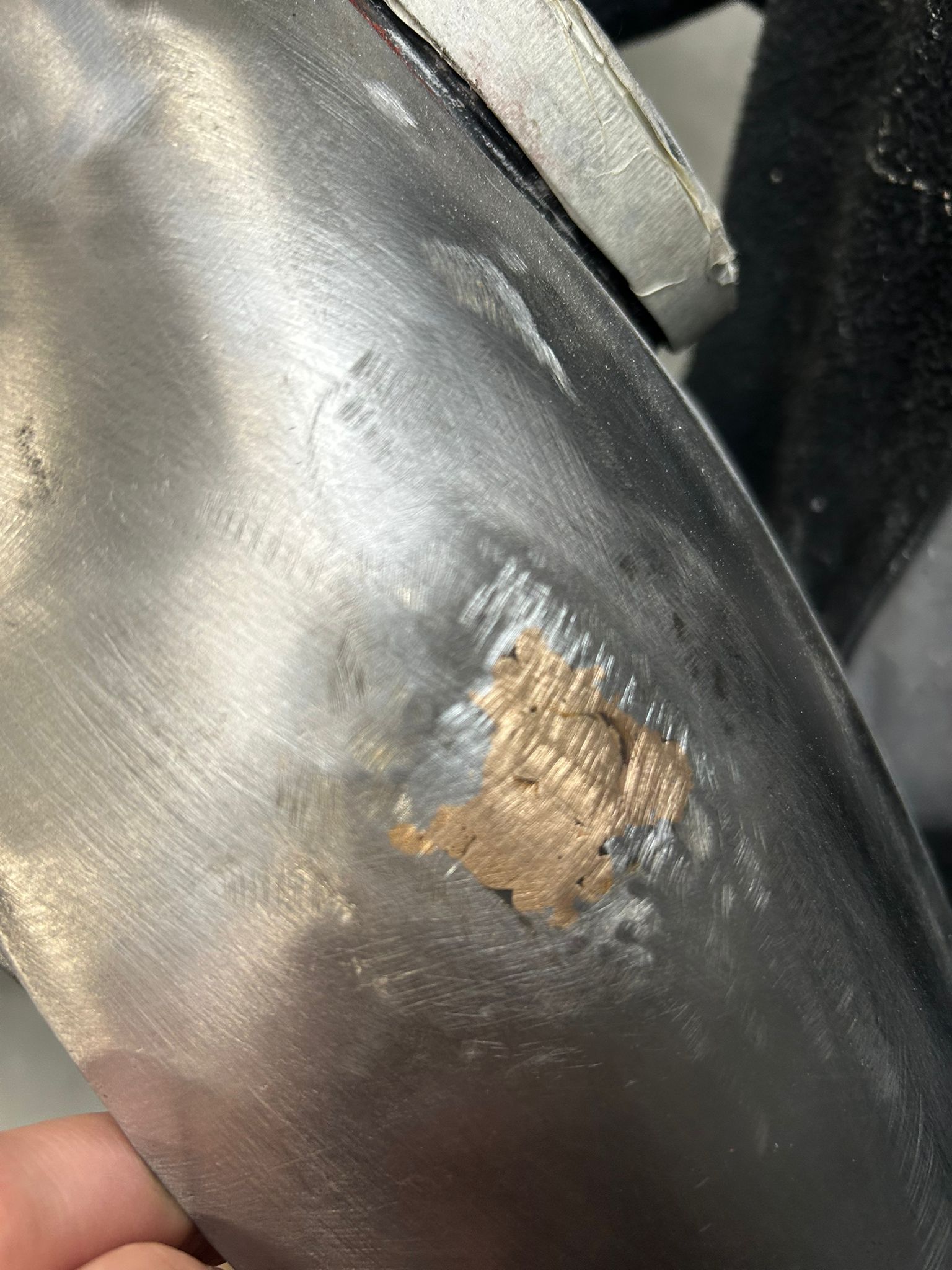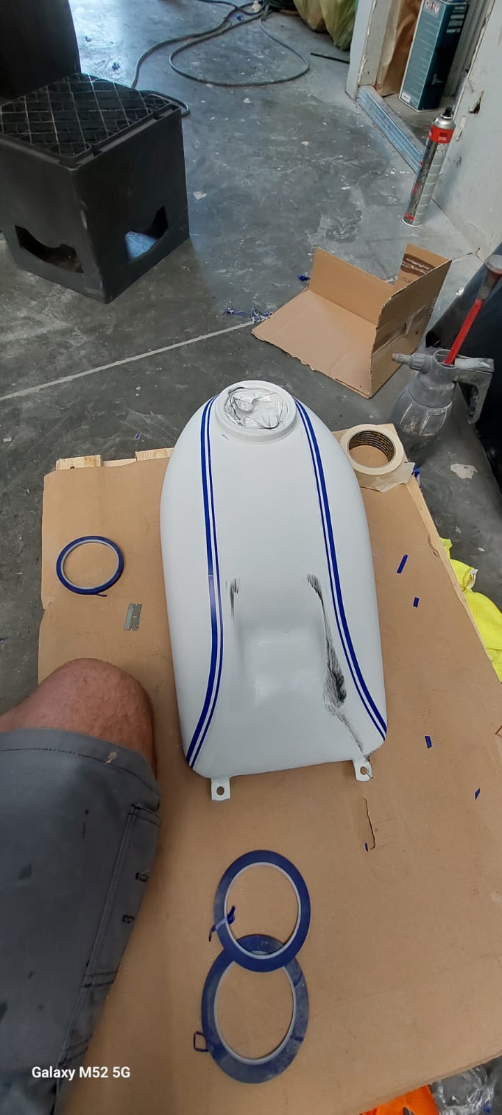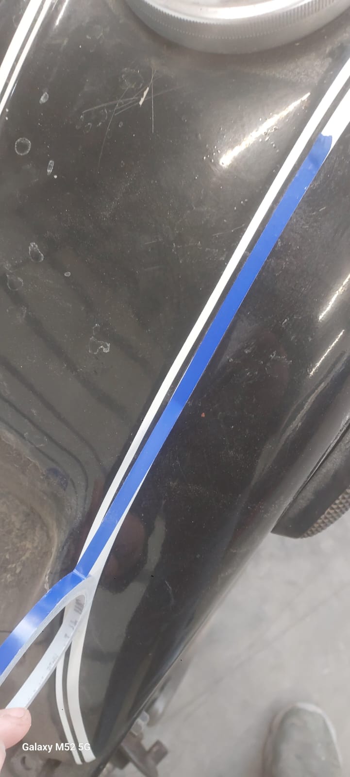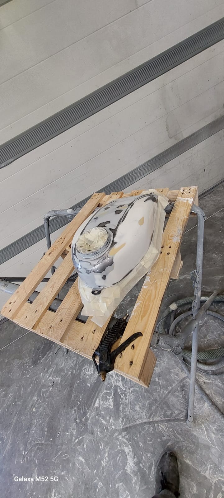 Konieczne było rozcięcie zbiornika. Jak opisuje przedstawiciel CUNEO, wnętrze oczyszczono chemicznie i metodą śrutowania szkłem. Deformacje po uderzeniach naprawiono klasycznie – wypychaniem i cynowaniem, by uniknąć nadmiaru szpachli. Po spawaniu bak został wytrawiony kwasem fosforowym, zabezpieczony epoksydem, a do wnętrza wlano specjalny preparat uszczelniający na bazie żywic fenolowych.