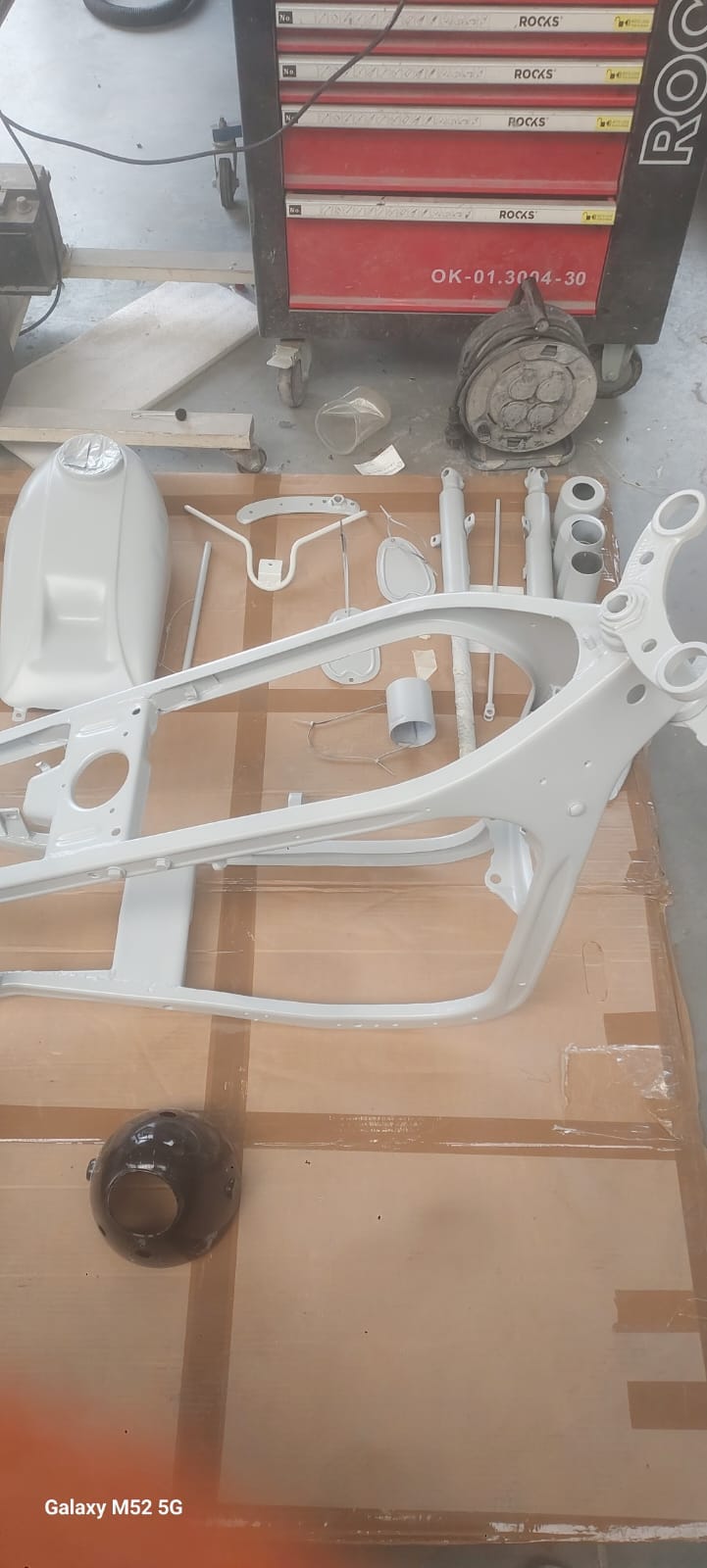 Renowacja klasyka niemal zawsze oznacza walkę z korozją. Po rozebraniu motocykla na części, pierwszym krokiem było oczyszczenie bazy.