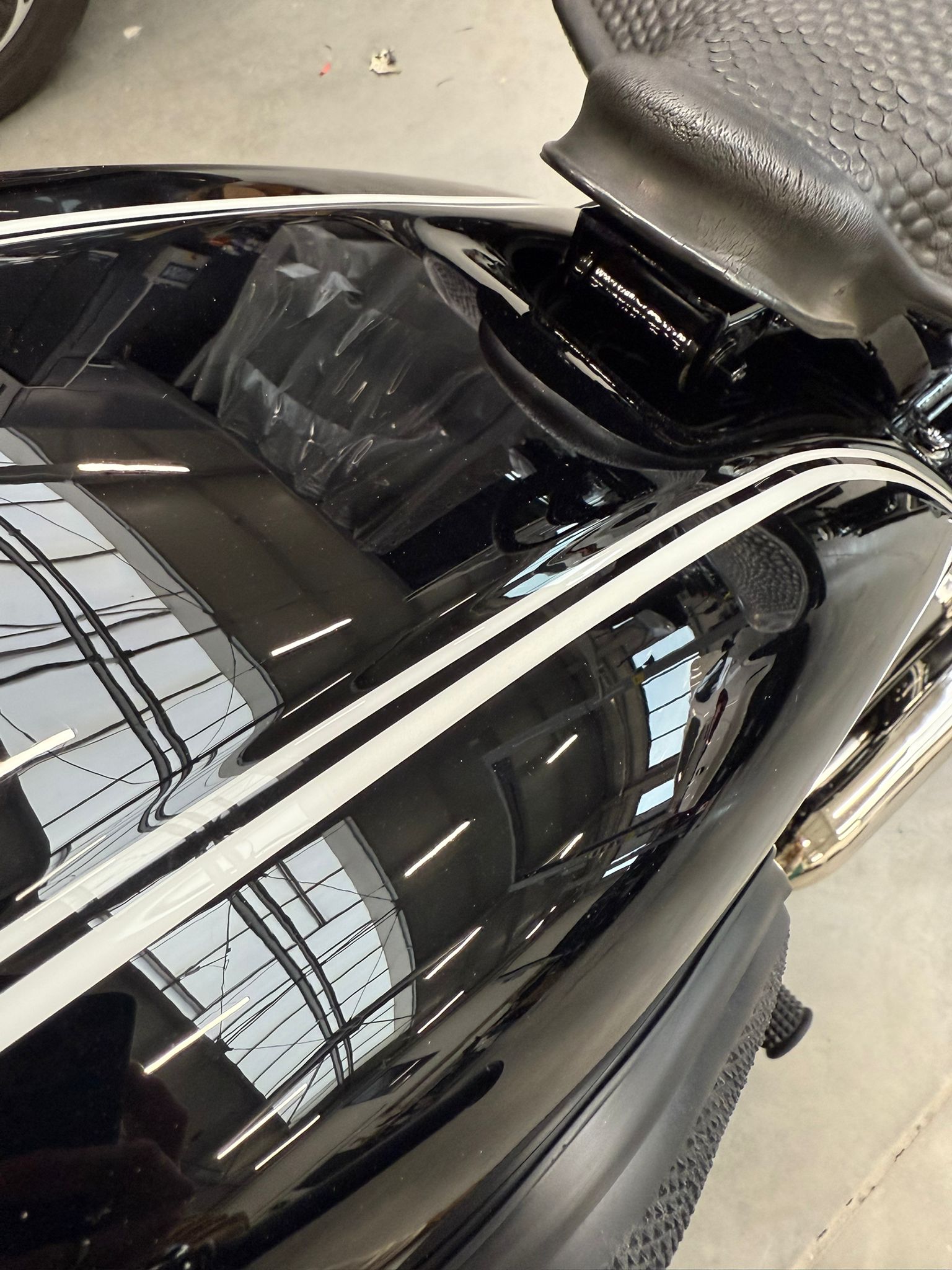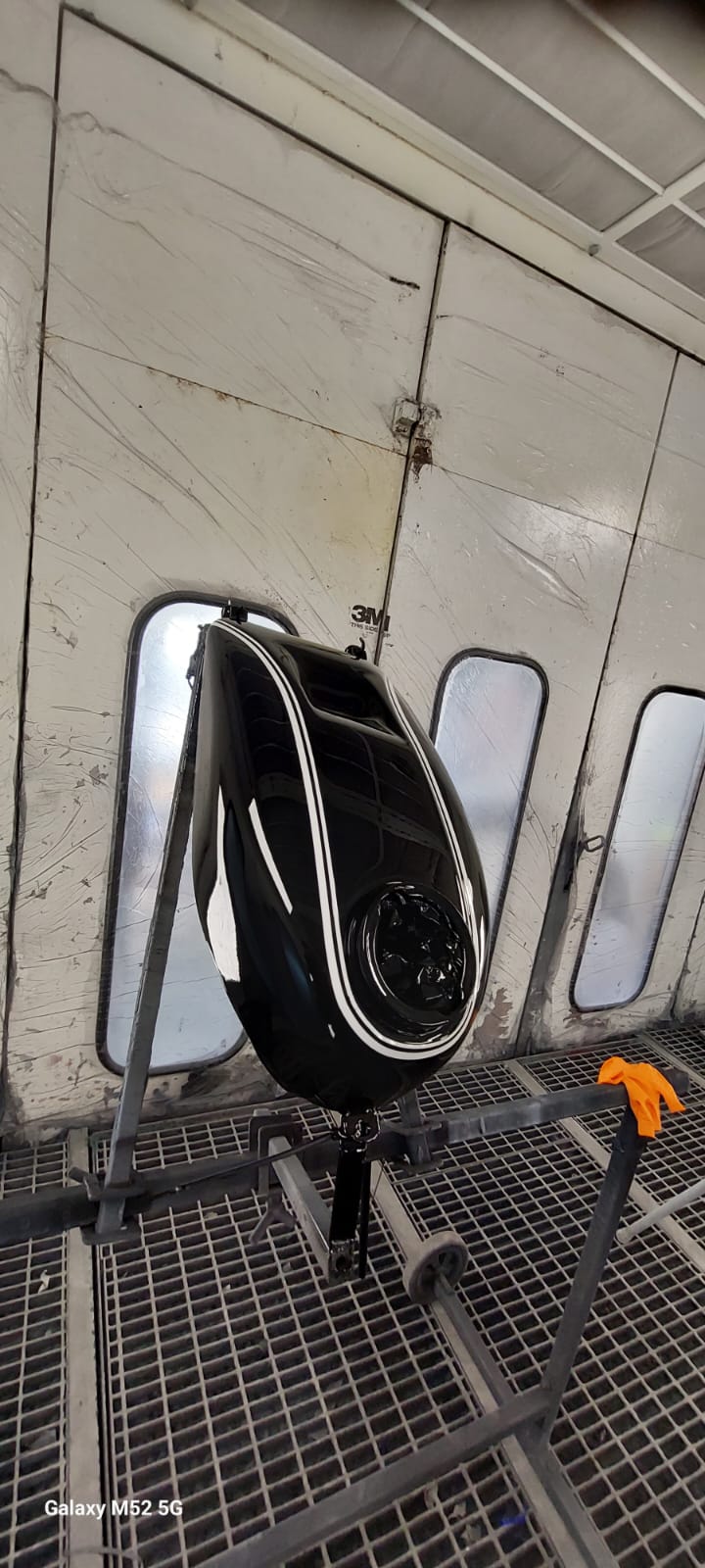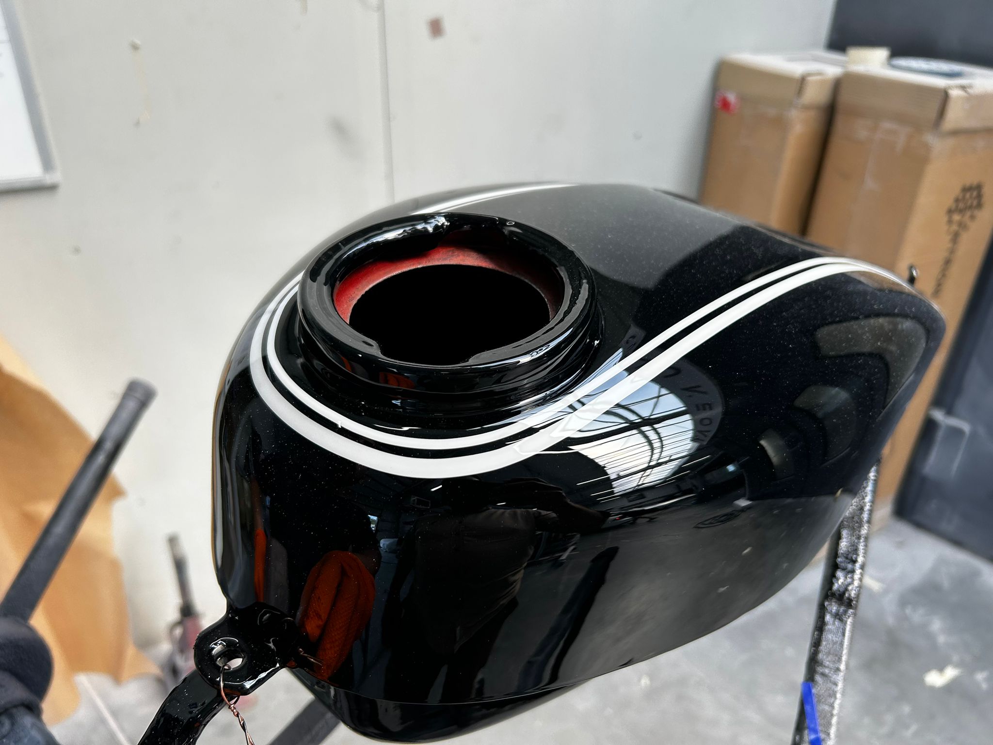 Dla portalu lakiernik.com.pl najciekawszy jest jednak sam proces malowania. W klasycznych motocyklach kluczowe są ozdobne paski, tzw. szparunki. W CUNEO postawiono sobie ambitny cel – miały być one niewyczuwalne pod palcem, tworząc idealnie gładką taflę.