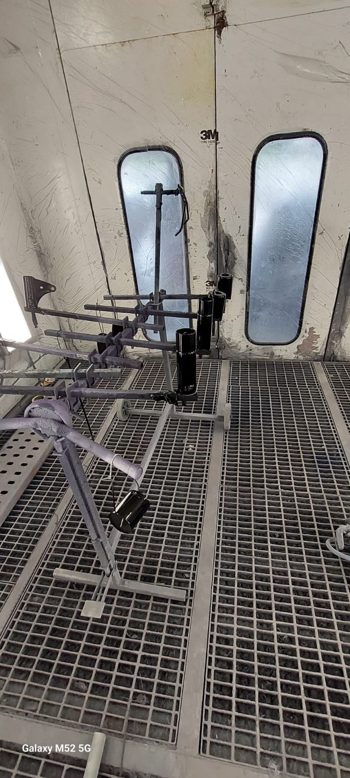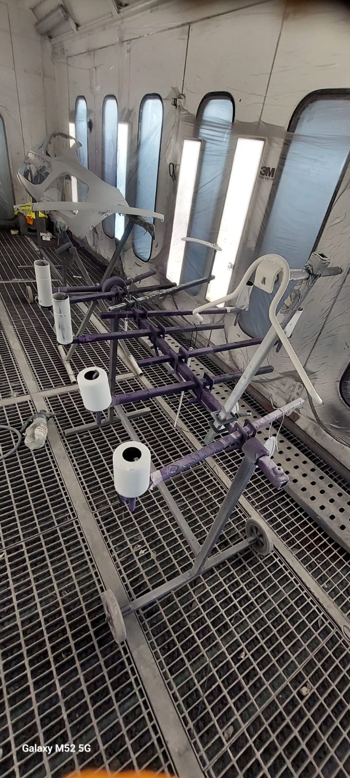 W przypadku elementów konstrukcyjnych, takich jak rama, zdecydowano się na piaskowanie korundowe. To ścierniwo pozwoliło na agresywne, ale kontrolowane usunięcie wieloletniej rdzy i starych powłok lakierniczych, jednocześnie – co kluczowe przy starych stalach – bez ryzyka nadmiernego przegrzewania materiału i jego deformacji.